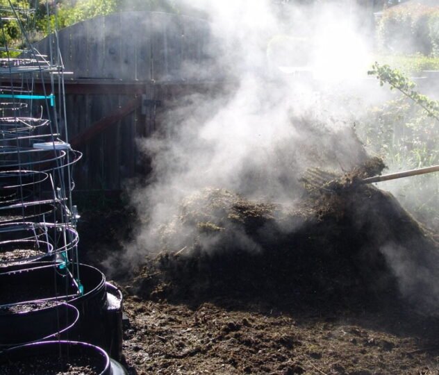 Jak se organický materiál rozkládá, vzniká teplo. To je výsledkem dýchání mikroorganismů během jejich „práce“. Aby se teplo uchovalo a aby se kupa vůbec dokázala zahřát, je potřeba, aby minimální objem byl aspoň jeden kubický metr. Pokud bude víc, nevadí. V teplotě se opět oba pánové rozcházejí. Shodují se aspoň ve škále, která je 55 °C – 70 °C. Lawton přesto preferuje udržovat teplotu mezi 55 °C – 65 °C. Raab ve své studii ubezpečuje, že teplota může bezpečně vystoupat až na horní hranici, kterou však nesmí překročit. Jinak budou všechny důležité mikroorganismy zahubeny. A to znamená konec všemu snažení. Já osobně se přikláním k Lawtonovi, který volí zlatou střední cestu. Jak tedy zjistíte žádanou teplotu, pokud nevlastníte teploměr? Nejúčinnější je použít praktický test, který spočívá v ponoření ruky do kupy. Pokud vložíte ruku do cca 60 °C, jednoduše ucuknete, protože pro naše tělo jde už o poměrně horké prostředí. A do 70 °C už ruku radši ani vkládat nebudete chtít, jelikož už byste riskovali opaření. Takové horko pocítíte okamžitě, už během hloubení sondy. Udržení teploty je velice důležité. Ujistěte se tedy, že kompost bude dobře chráněn před deštěm, který by ho mohl podchladit. Prostě jej jednoduše přikryjte například celtou či pytlovinou.