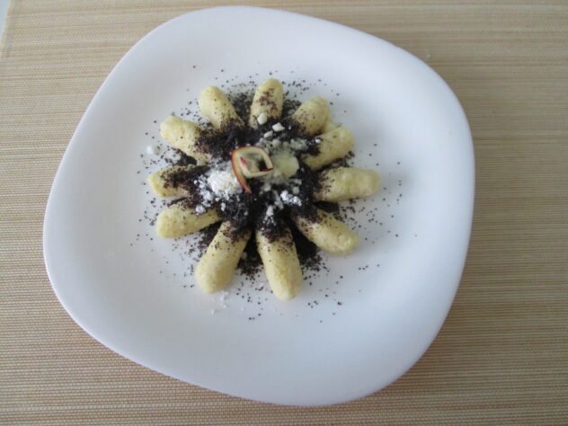 Když jsou šišky uvařené, vyndáme je z vody a můžeme je servírovat. Poklademe na talířek, posypeme mákem, cukrem, a zalijeme zahřátým kokosovým nebo dýňovým olejem. Pokud se vám podařilo, jako mně, udělat šišek slušnou hromádku, můžete si je i zamrazit. Dají se pak konzumovat na sladko i na slano. V případě, že je budete chtít jíst na slano, nepřidávejte do směsi pudink.