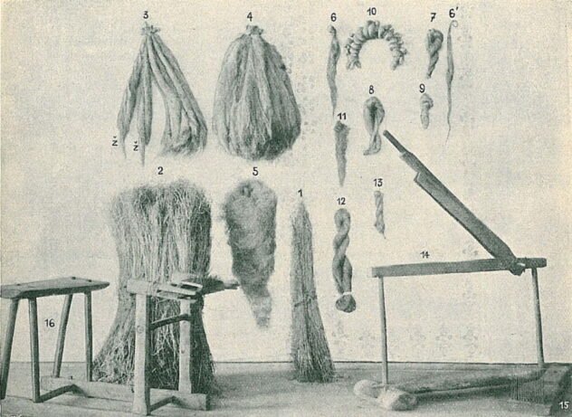 Sklizeň a zpracování lnu probíhalo následovně. Vytrhaný len se pokládal do řádků nebo stavěl do malých „kapliček“ a nechával se rosit a sušit při častém obracení. Při tom dozrávaly tobolky, obsahující výživná olejnatá semena. Tobolky se poté na těžkých železných hřebenech „drhlenech“ otrhaly a stonky se odvezly do pazderny k sušení. Pazderna bylo účelové stavení, umístěné kvůli častým požárům mimo obec. Topilo se tam ve velké peci a na žebřinách pod stropem se sušily otýpky lněných stonků. Proschlé stonky se pak lámaly nebo dlachnily na dřevěných mědlicích (mědlice vypadá jako řezačka na papír) a pak potíraly na stojanových vochlích (stabilní železný hřeben).