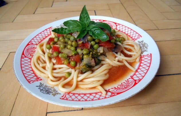 Toto je veganská verze, obohacená o hrášek a žampióny: