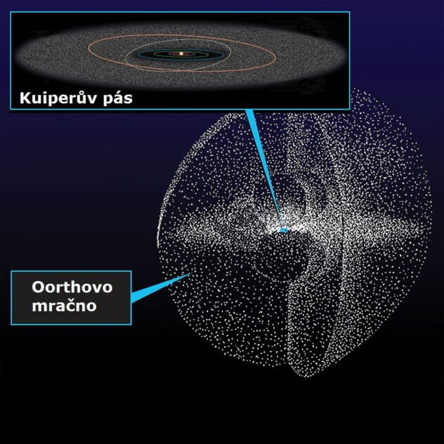 Potom je tu ještě Oorthovo mračno, ze kterého pocházejí pravděpodobně komety s periodou delší než 200 let. Oorthovo mračno je hypotetický oblak kolem sluneční soustavy ve vzdálenosti 50 000 astronomických jednotek od Slunce (1 AU = střední vzdálenost Země od Slunce). Jeho existence nebyla prokázána, ale většina astronomů jej považuje za reálný. Mělo by jít o pozůstatek okraje planetární mlhoviny, ze které se naše soustava zformovala.