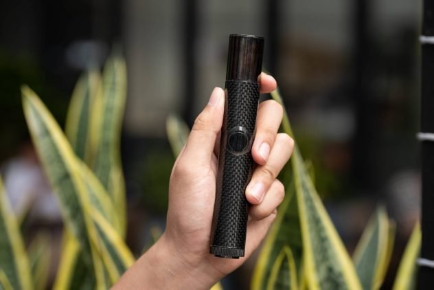Flowermate Slick má povrchovou úpravu z uhlíkových vláken a ta vypadá opravdu stylově. Přístroj je navíc vyroben tak, aby vydržel. Víčko kryjící náustek do celého designu skvěle zapadá, navíc je magnetické a během používání vaporizéru jej lze snadno umístit na spodní stranu přístroje, takže ho neztratíte ani nikde nezapomenete. K celkové estetice přispívá i již zmiňované barevné informační světlo kolem tlačítka. Jinými slovy: Slick vypadá jako přístroj z vyšší třídy!
